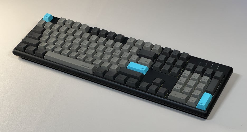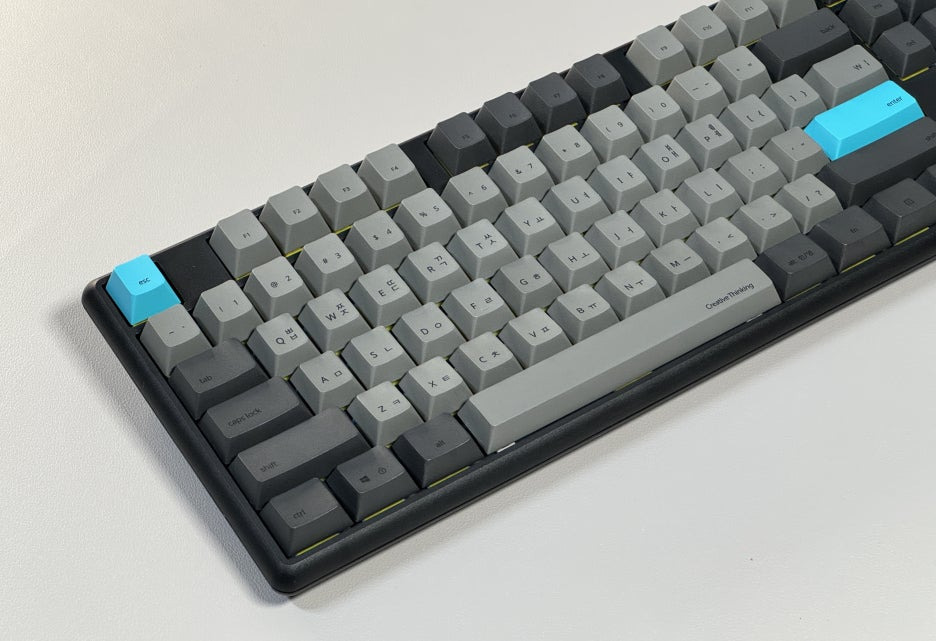 기본적으로 까만색 플라스틱 하우징과 3톤의 배색의 키캡 조합이 되어 있는데,